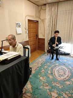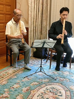 今回のミニコンサート後半のアンコール曲では、先生お二人での演奏はすべてぶっつけ本番でした。それでも、お互いの間(ま)を楽しんでおられる