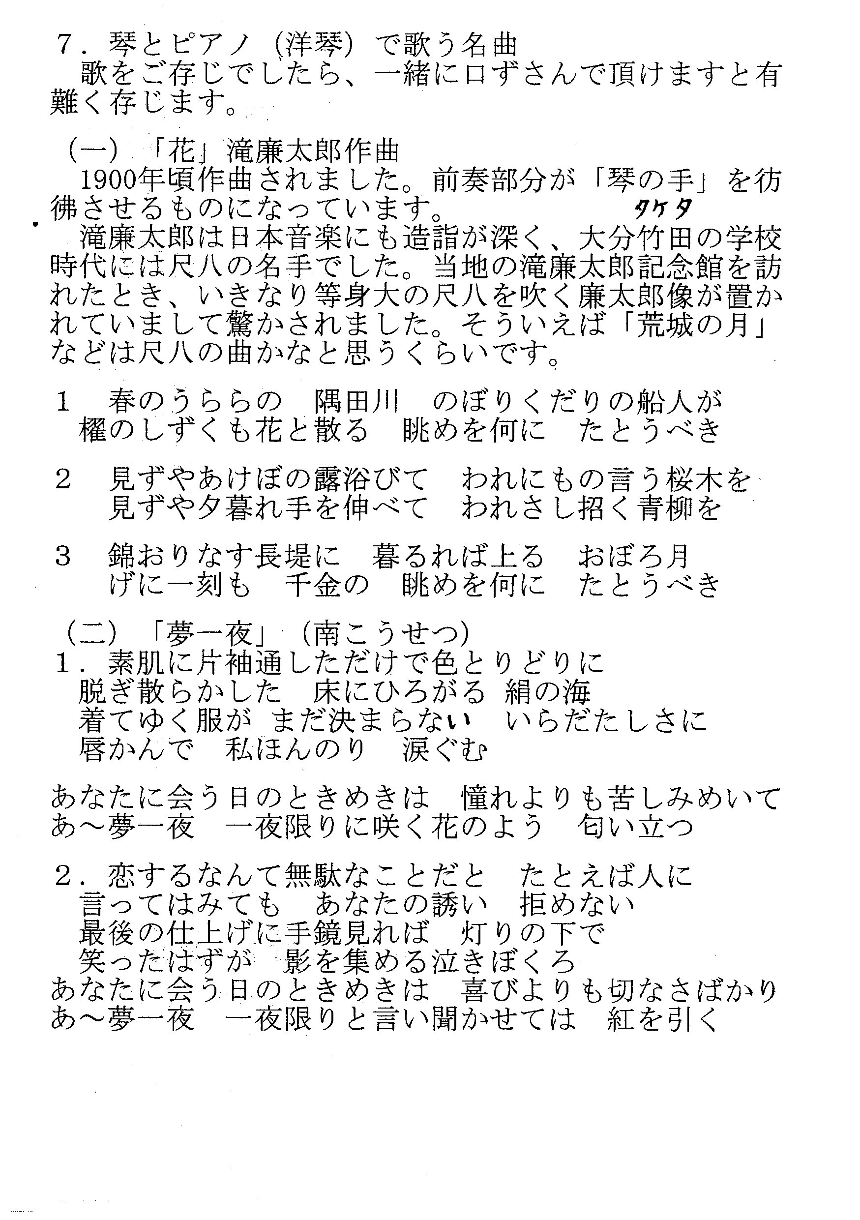 6.「雨の水前寺」は 琴 新谷先生 と 尺八 貴志先生とで よく合奏される曲で